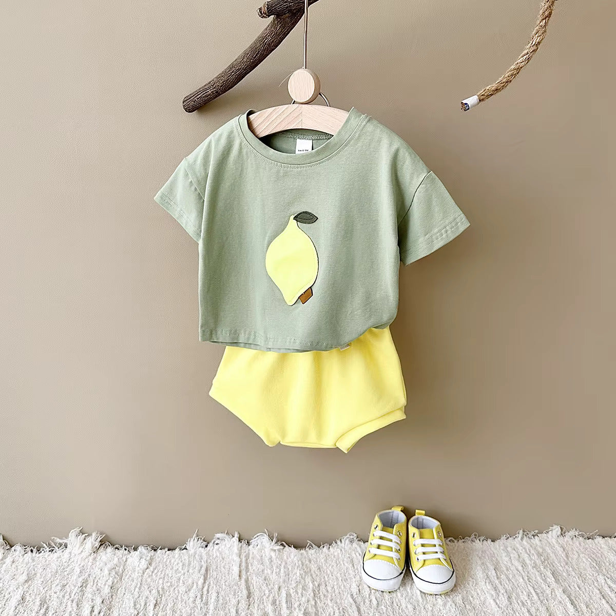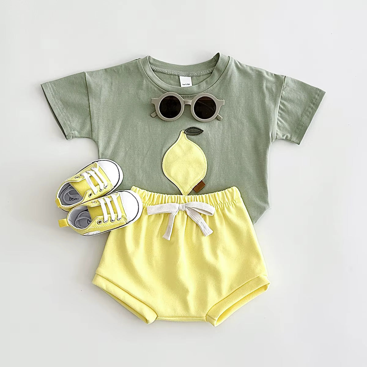Dress your little one in this delightful 2-piece set, featuring a charming lemon print on a round-neck T-shirt paired with coordinating shorts. Crafted from 100% premium cotton, this outfit ensures comfort and breathability for your newborn's sensitive skin.