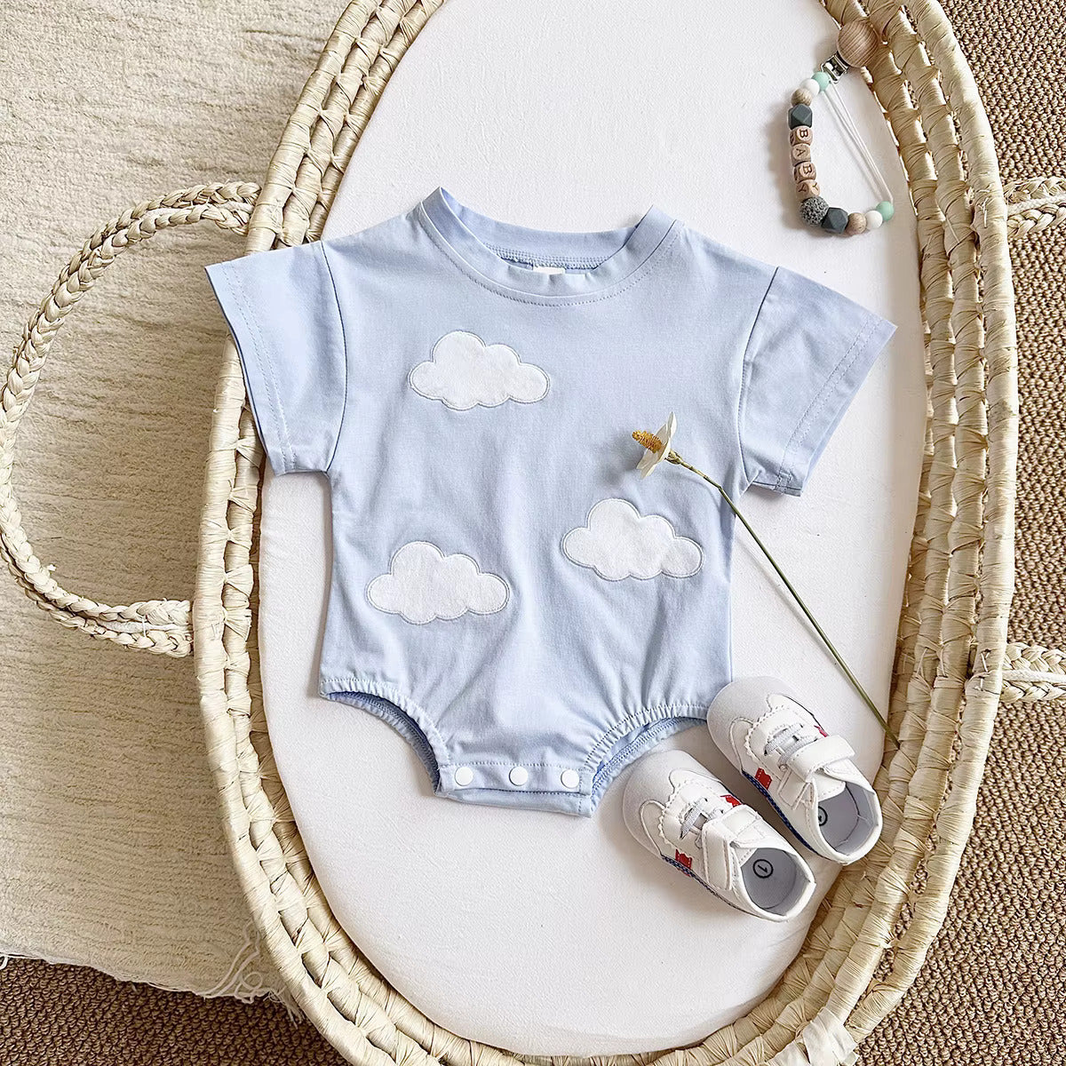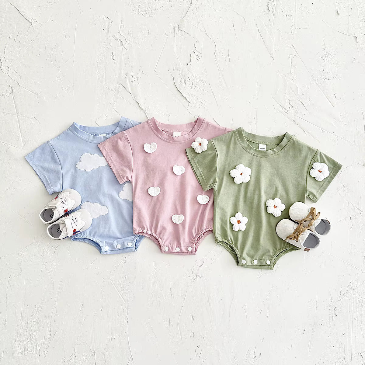 Keep your little one cool and comfy all summer long with these charming 100% cotton rompers! Designed for easy movement and all-day comfort, these lightweight rompers feature fun prints like clouds, flowers, and hearts—perfect for warm-weather adventures. 🌸☁️❤️